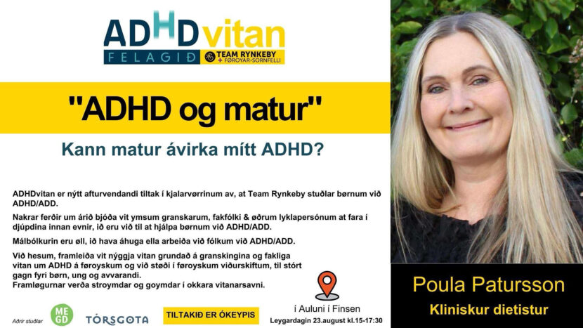 22. august 2025 var eitt ADHD-vitan tiltak í Finsen um kost og ADHD. Poula Patursson, kliniskur dietistur og næstforkvinna í ADHD felagnum hevði framløgu grundað á gransking.